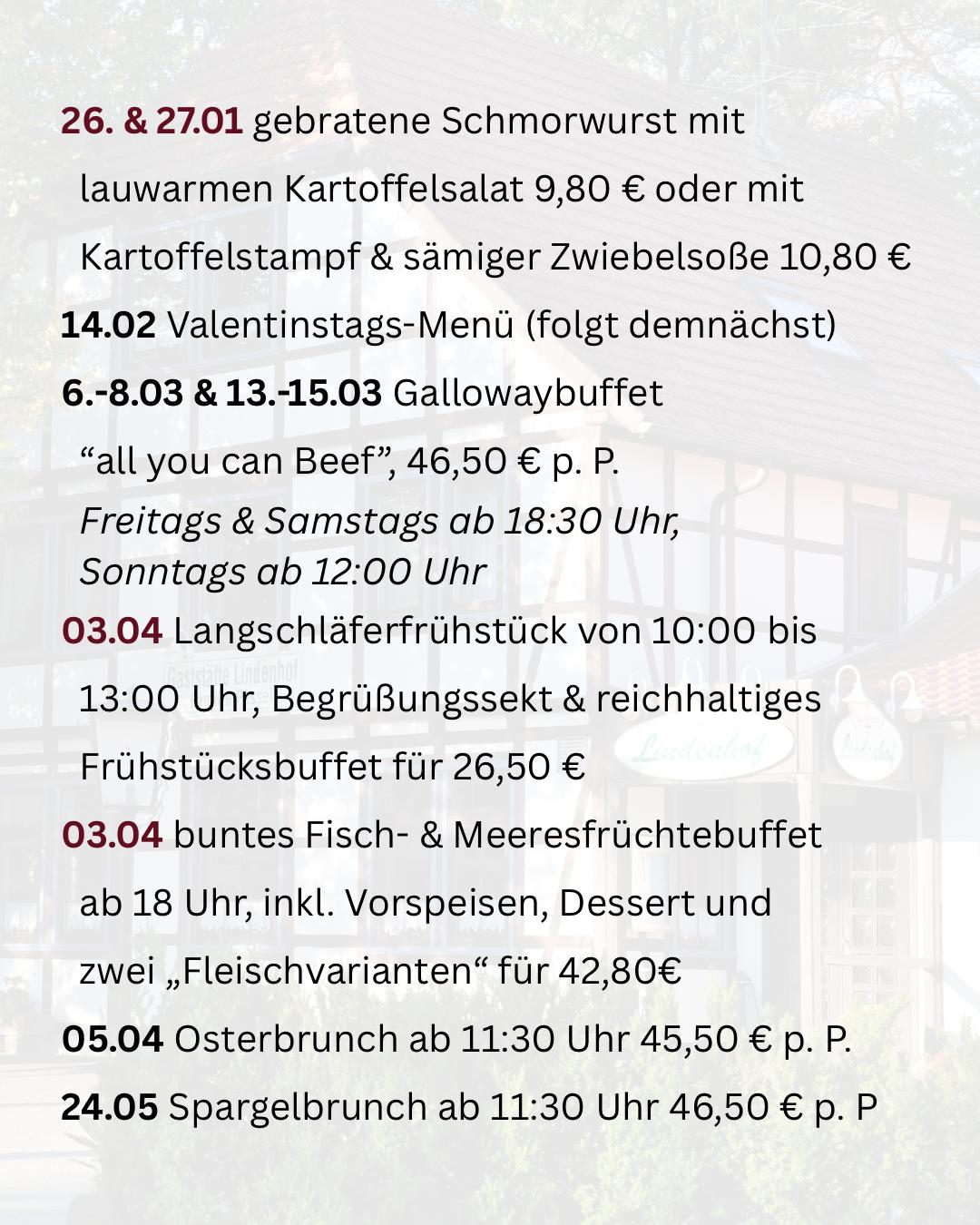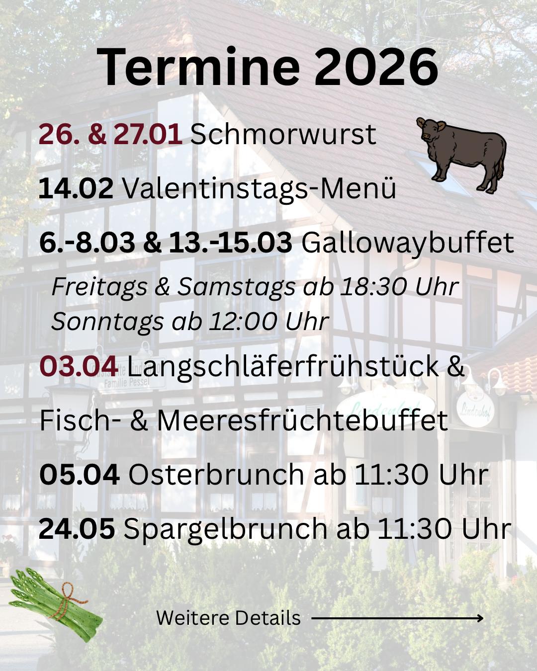 1975 übernahmen dann Sohn Hermann Pessel jun. mit Frau Sieglinde den Lindenhof. Von seinem Vater bekannt war die legendäre Bockwurst „ um Dumm“, doch nun folgte ein neues Kapitel mit den nun in der Ferne bekannten Grünkohl- , Spargel- und Gans satt Essen sowie Feierlichkeiten auf dem Saal mit selbstgemachten Buffet`s.